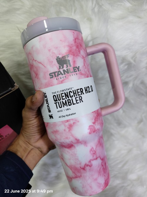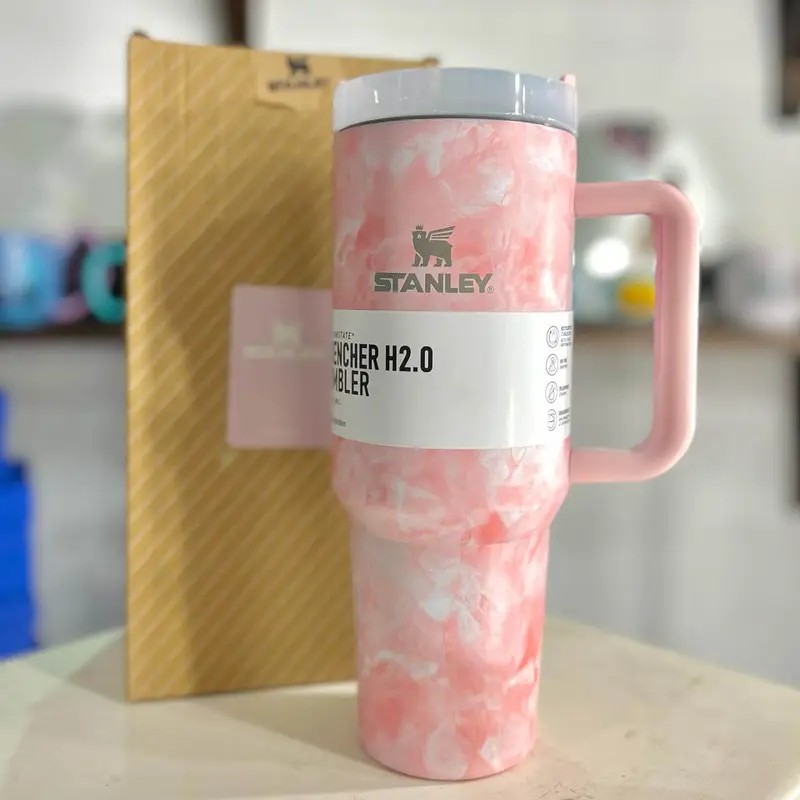 Stanley Quencher Marble Edition Tumbler Pink White