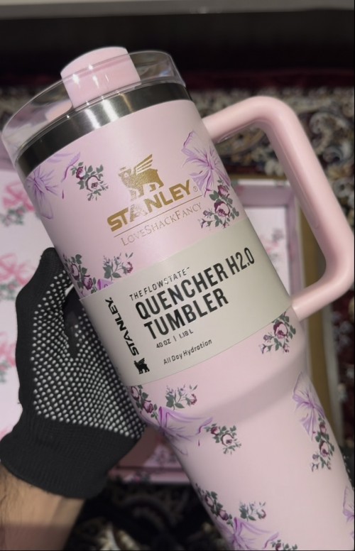 • Stanley x LoveShackFancy Flowstate Quencher 40 oz Love Shack Fancy Baby Pink